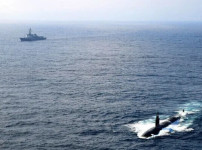 한·미 해군이 2023년 7월29일 제주 남쪽 해역에서 북한 잠수함 침투에 대비해 연합 대잠전 훈련을 실시하고 있다. 위가 한국 해군 이지스구축함 율곡이이함이고 아래가 미국 해군 핵추진잠수함 아나폴리스함이다. 해군 제공
