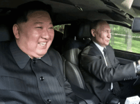 그들은 점점 더 긴밀하게 협력하고 있으며 때로는 함께 자동차를 운전하고 있으며, 아마도 곧 전쟁광인 블라디미르 푸틴(73, 오른쪽)과 김정은(41)이 새로운 다리를 건너고 있을 것입니다!