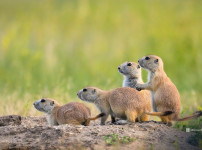 미국 사우스다코타주 배드랜드 국립공원의 검은꼬리 프레리 도그